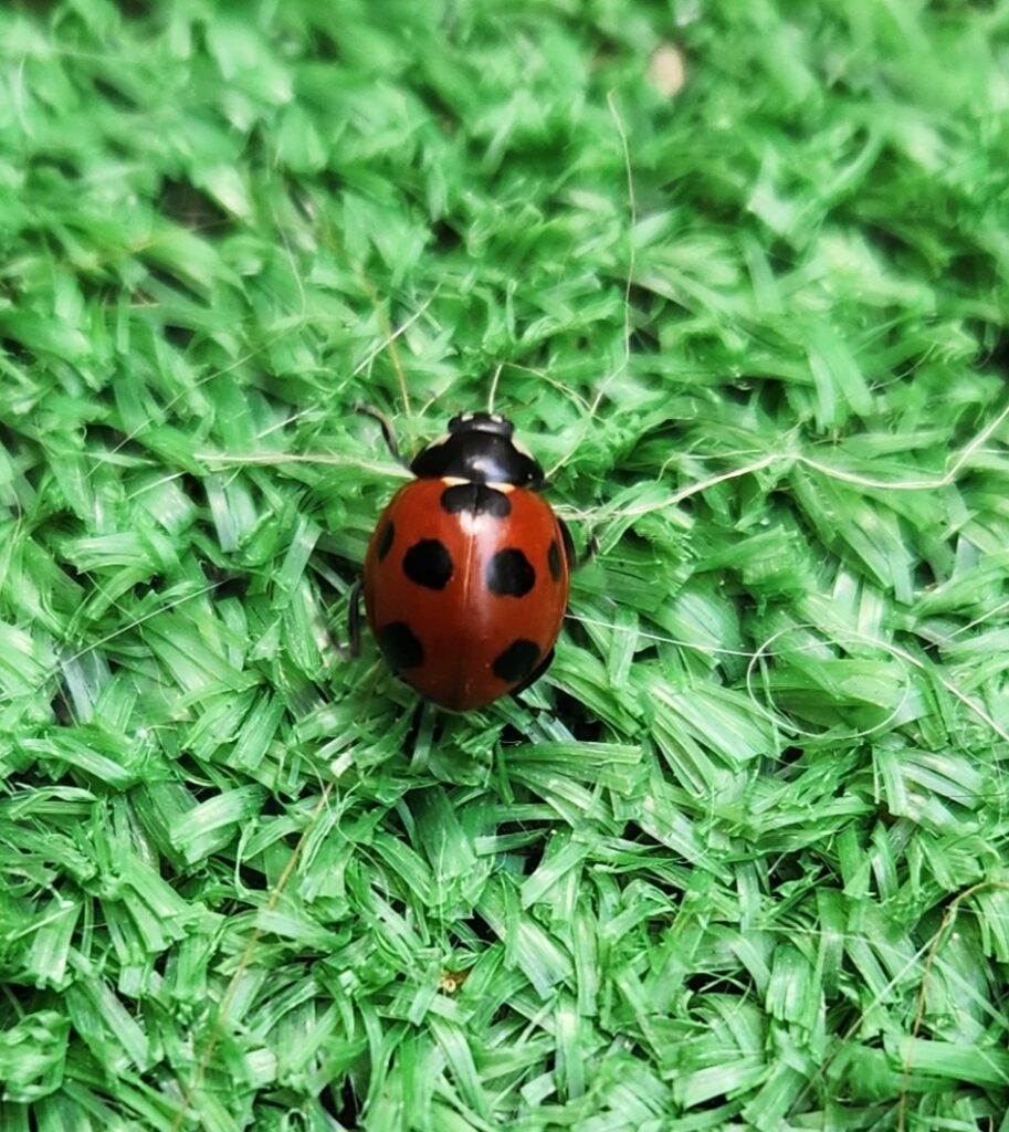 暖かいので自宅の庭で愛猫とメダカと日向ぼっこしているとてんとう虫が🐞